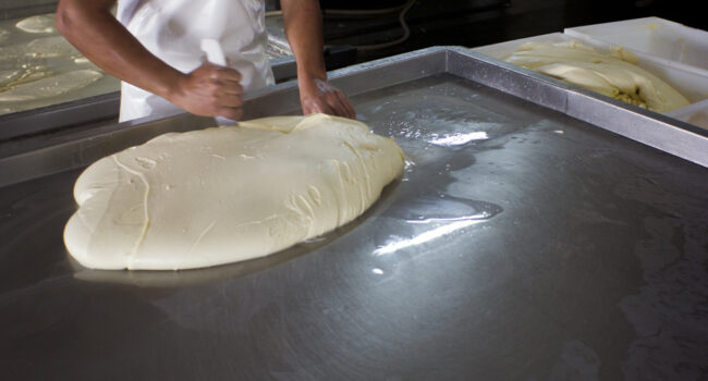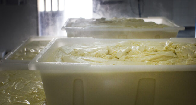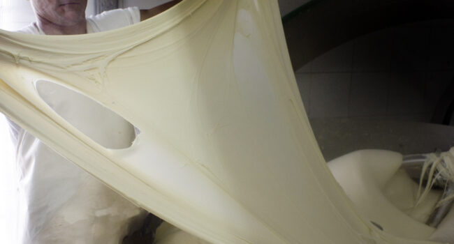 La cuajada así obtenida se divide en trozos no muy pequeños que se cocinan para que el maestro quesero los trabaje hasta obtener una masa elástica, que caracteriza la calidad Arotçarena.