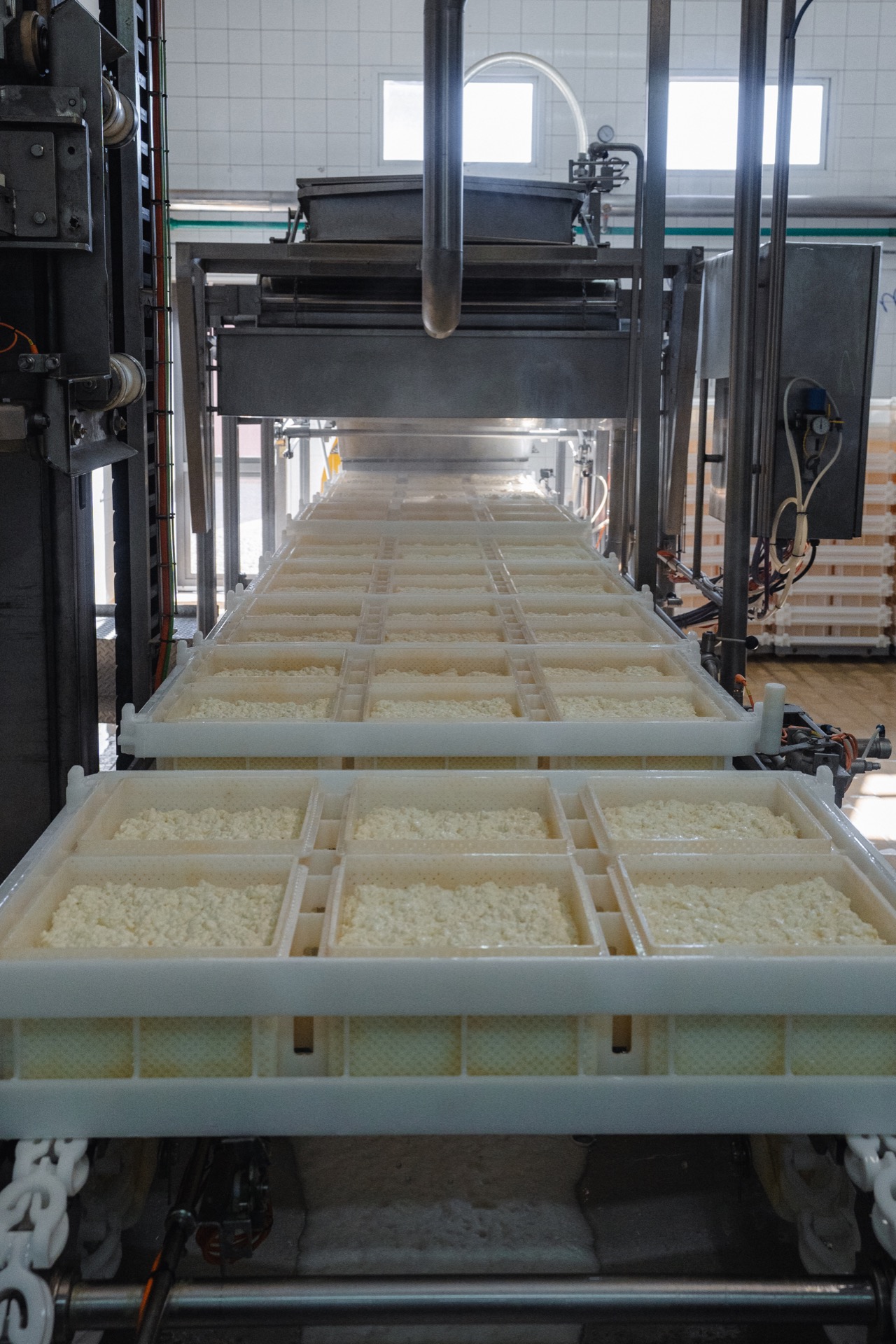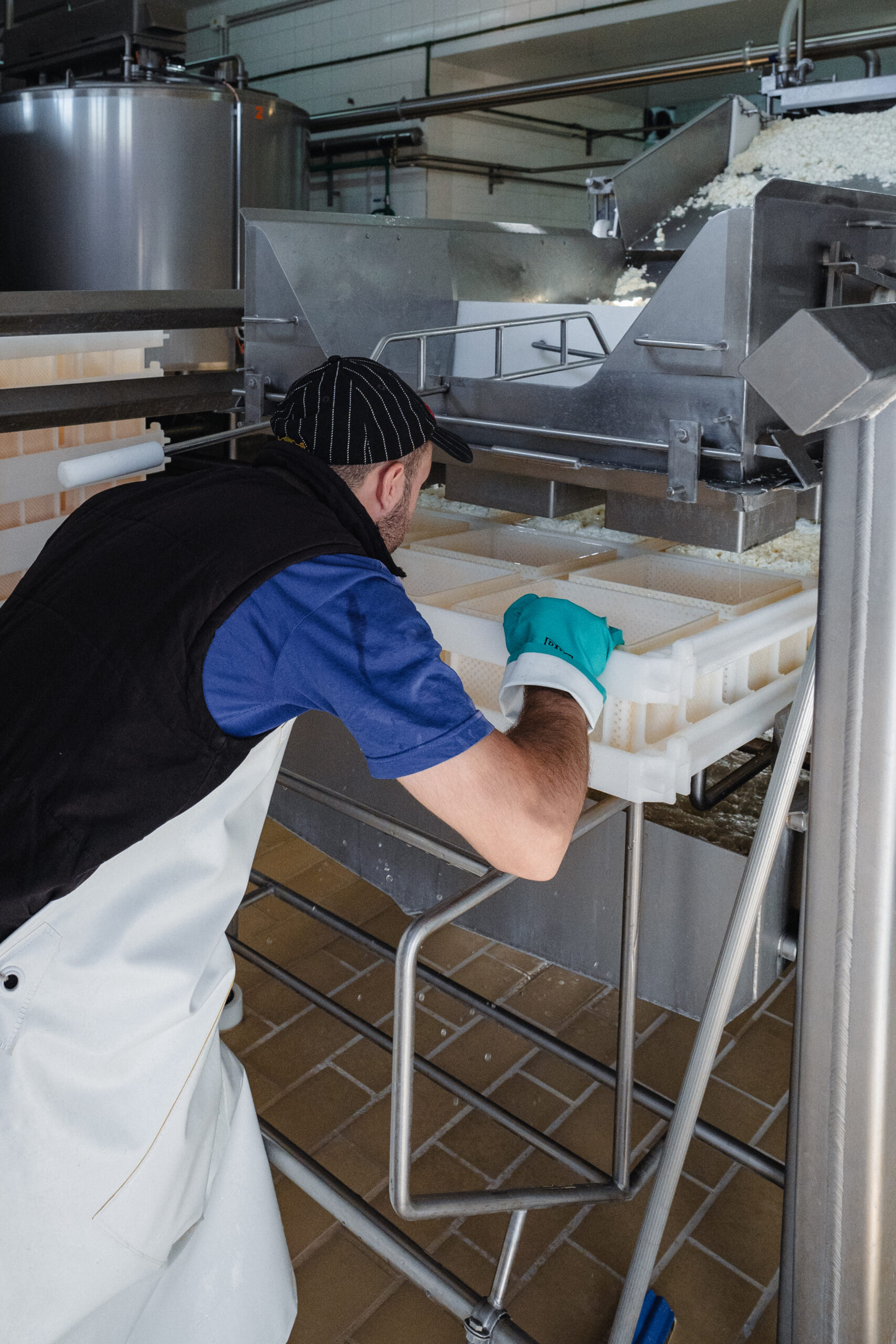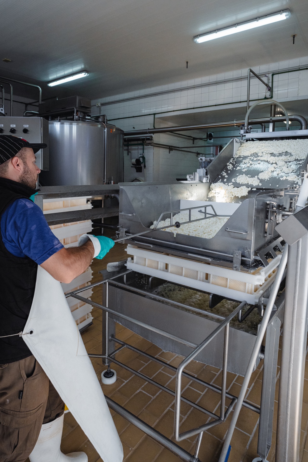 La cuajada así obtenida se divide en trozos no muy pequeños que se cocinan para que el maestro quesero los trabaje hasta obtener una masa elástica, que caracteriza la calidad Arotçarena.