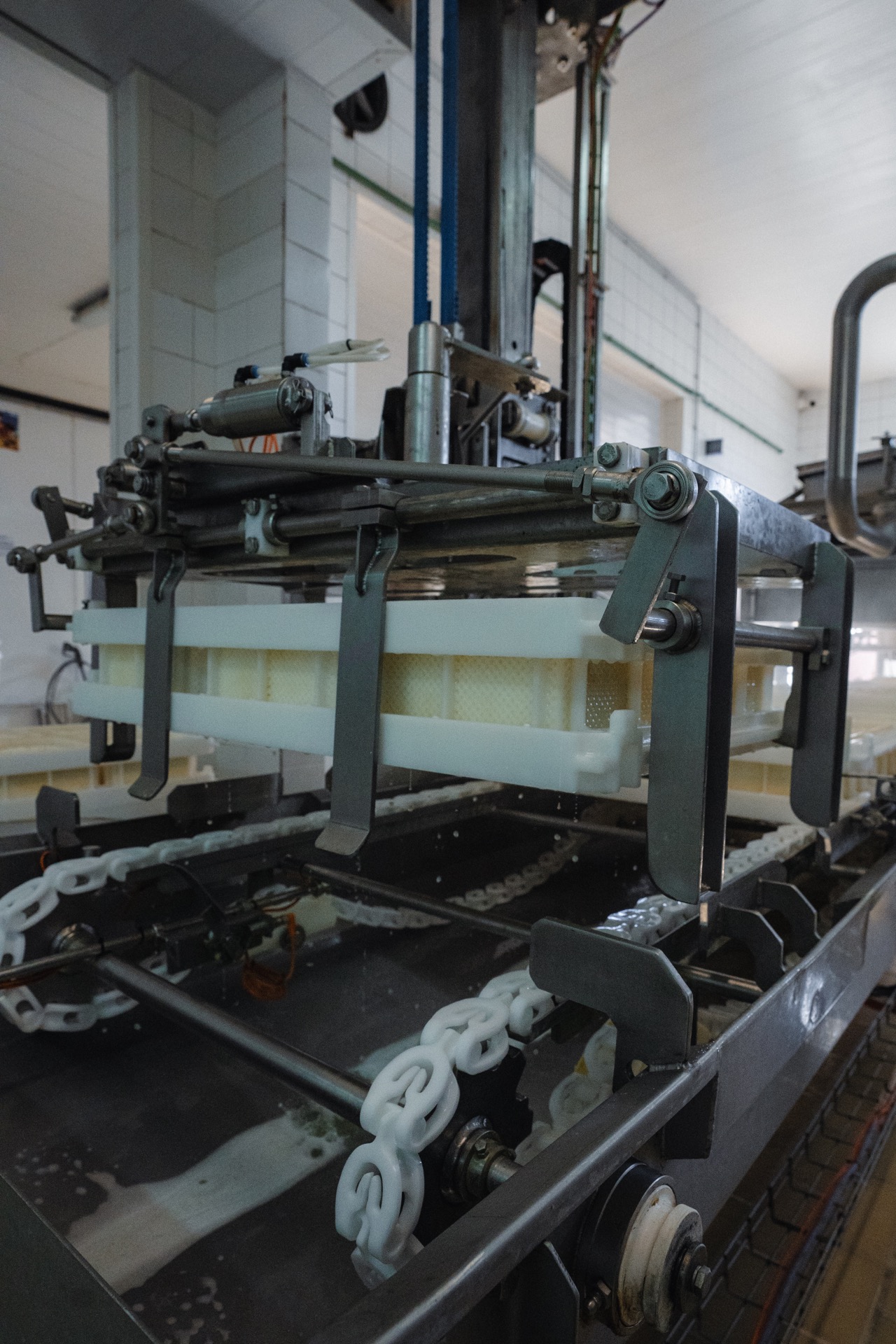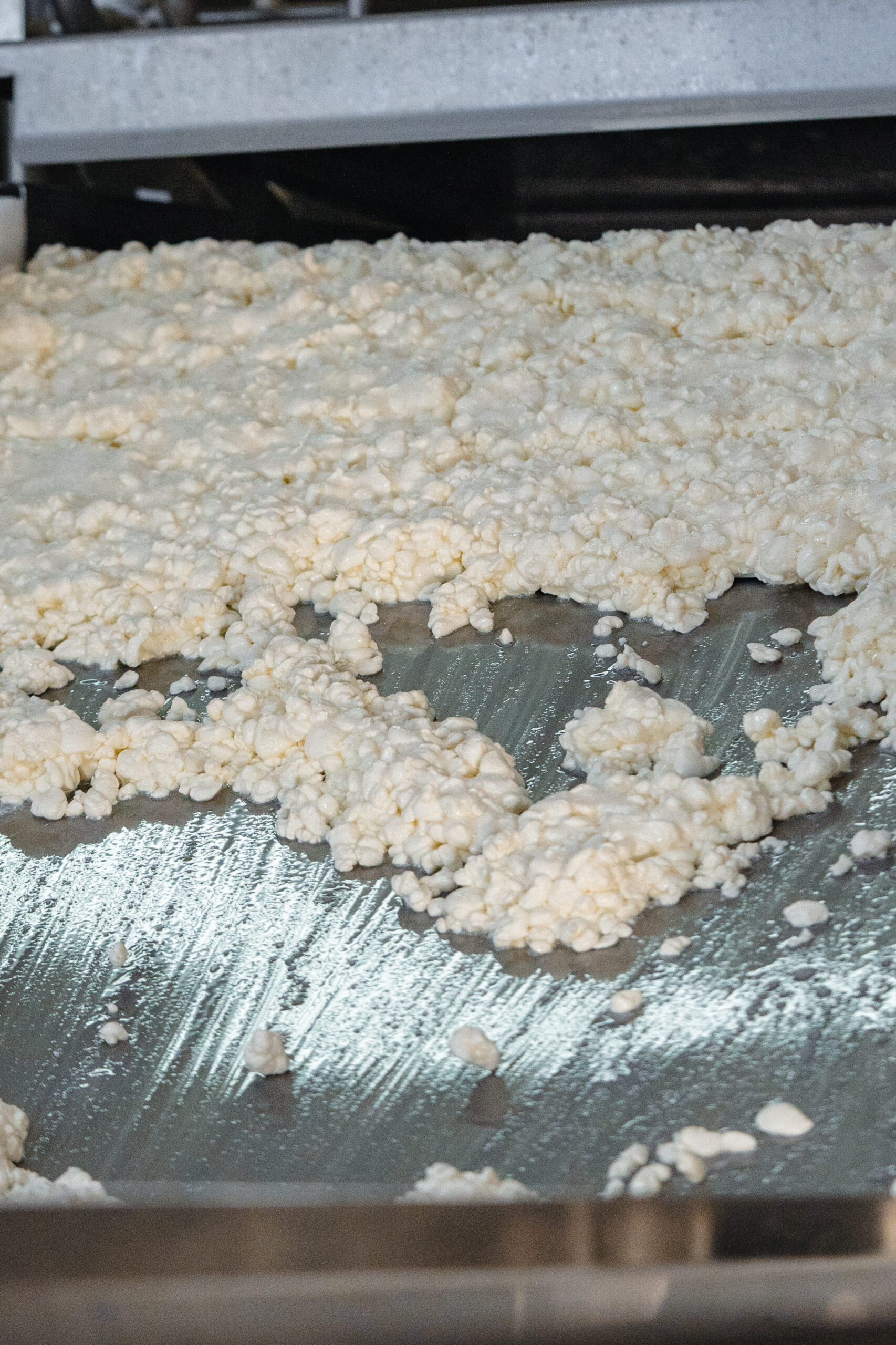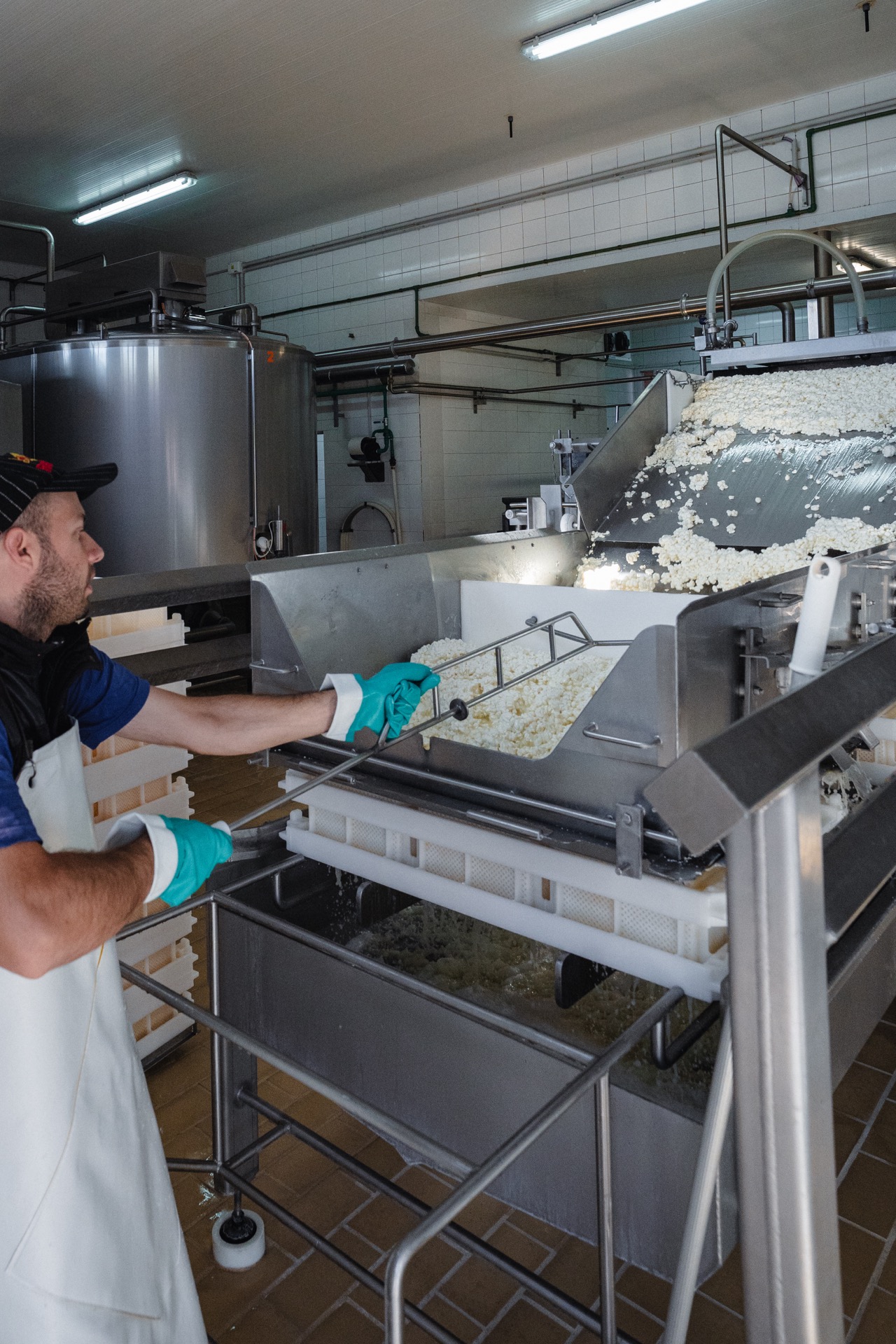La cuajada así obtenida se divide en trozos no muy pequeños que se cocinan para que el maestro quesero los trabaje hasta obtener una masa elástica, que caracteriza la calidad Arotçarena.